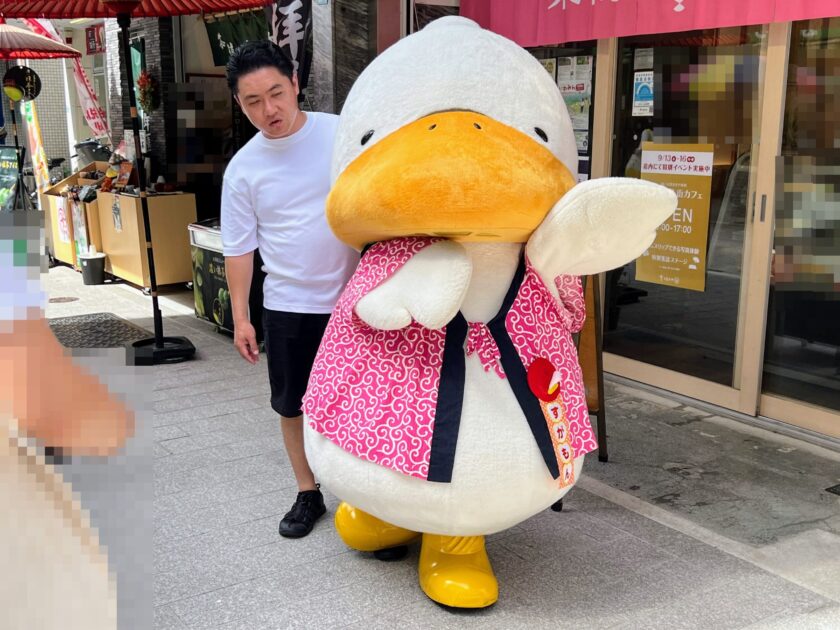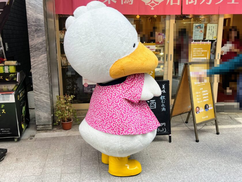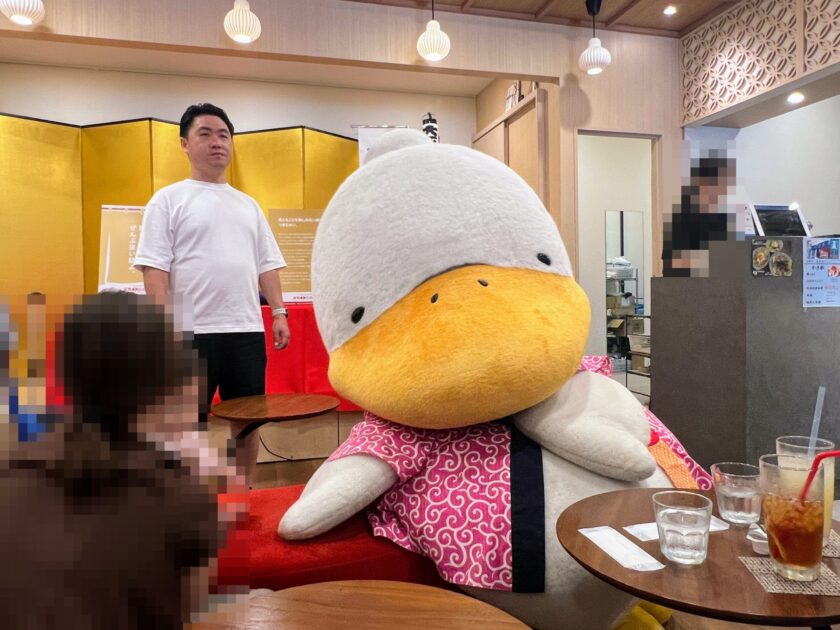 当時、巣鴨地蔵通り商店街公式イメージキャラクター「すがもん」が店に来ることは知っていたのですが、つかの間とはいえ、相席が実現するとは思ってもいませんでした。
