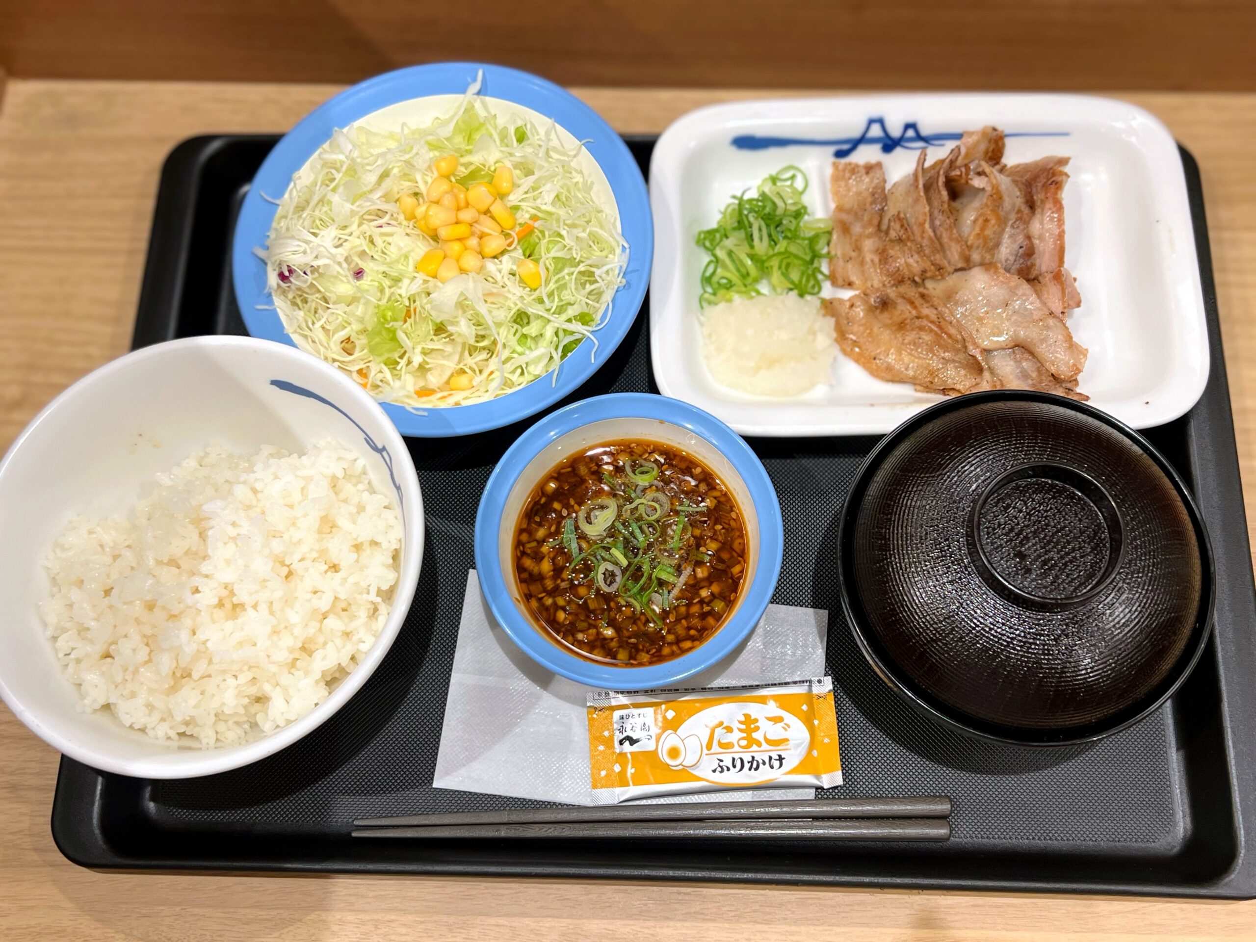 【松屋松のや併設店】「豚カルビ焼肉定食(油淋鶏ソース、ふりかけ付き)」(2024年9月)【期間限定】