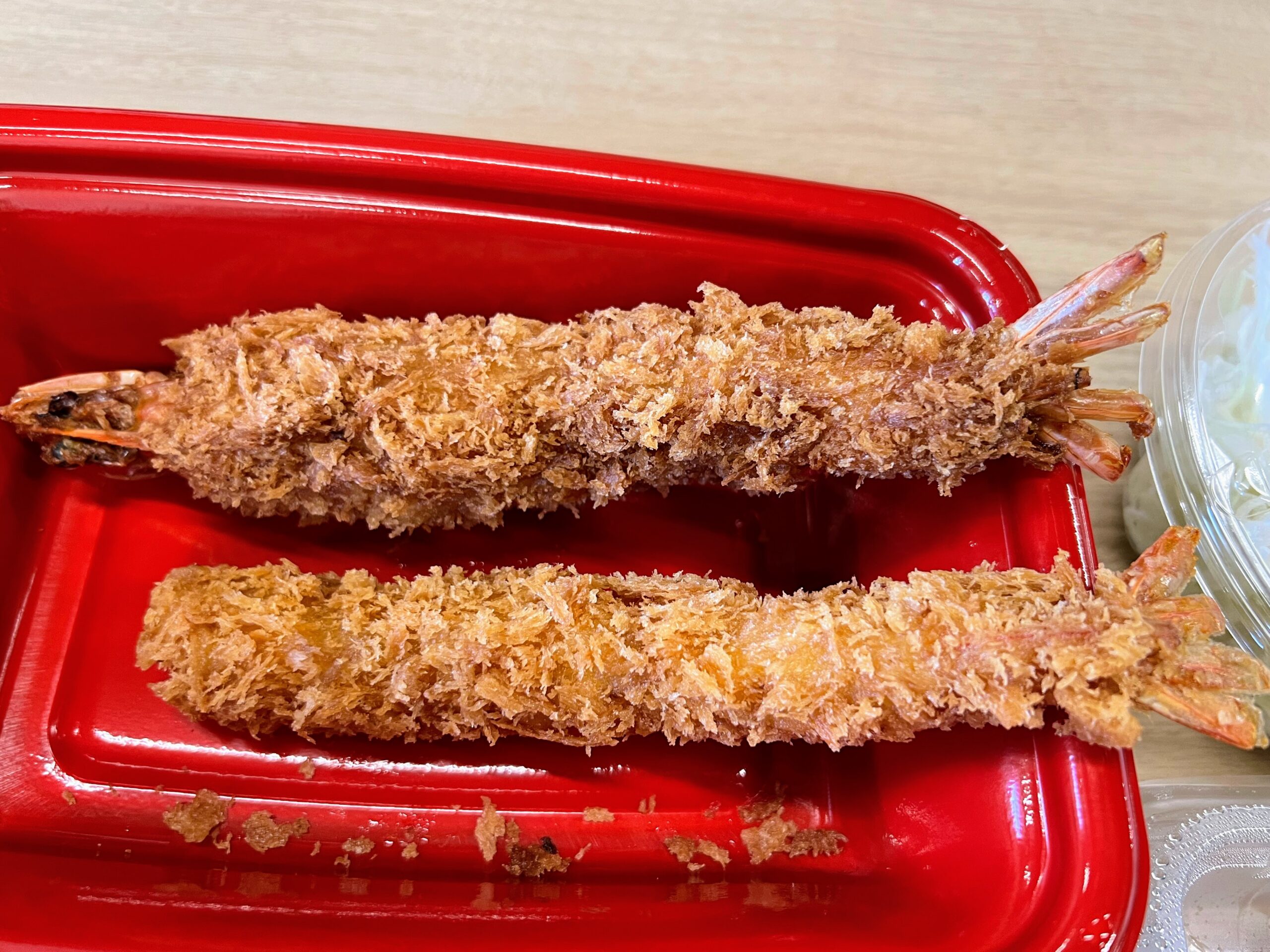 一方、普通の海老フライについては、小ぶりである分、他の揚げ物にもう1品付け加えることが容易にできます。味や形などは何の変哲もないといったところですが、それだけに食べやすいのも間違いありません。これからも機会があれば食べることもありそうです。