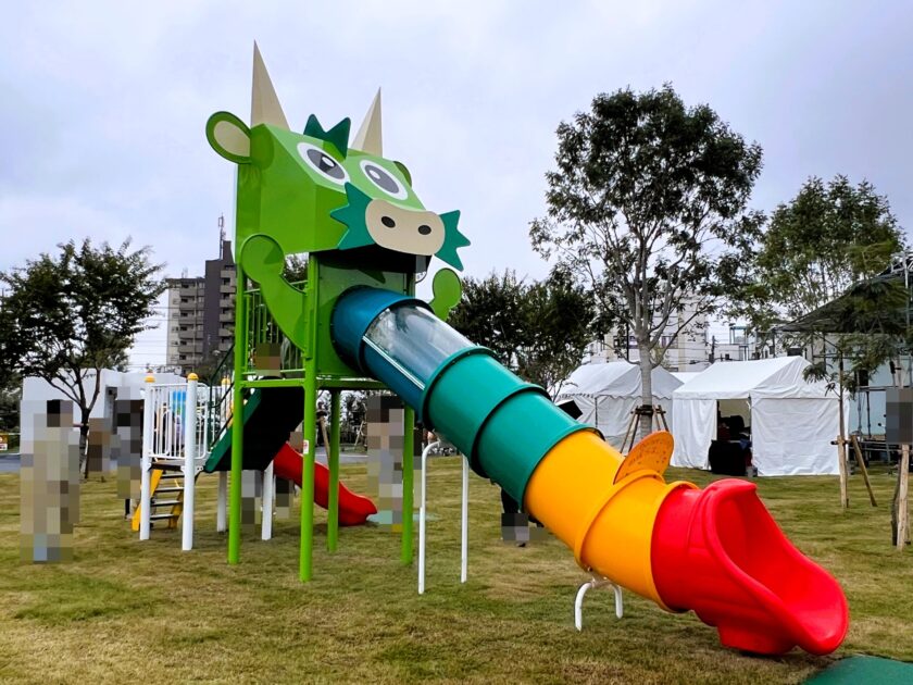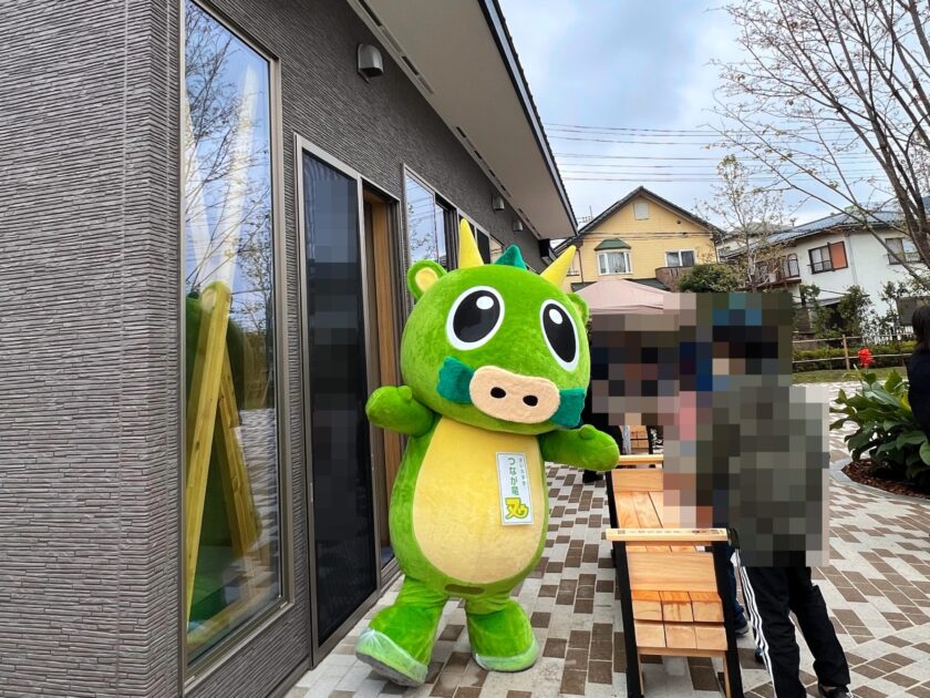 当日は小雨が降ったりやんだりと不安定な天気ではありましたが、それでも公園を回る分には問題なかったと思います。また、コミュニティハウスの近くではつなが竜ヌゥ君の姿を見ることもできました。園内においても「つなが竜ヌゥ」をあしらった滑り台、同キャラのイラストの描かれたボードなど、色々なものを見ることができて良かったと思います。