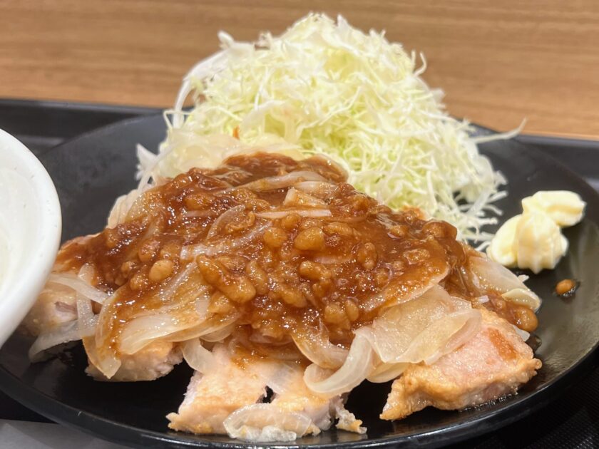 松のやの「揚げるトンテキ」は過去にも何度か販売されておりますが、今回はさらにパワーアップして戻ってきたという印象です。生姜焼き風のソースに背脂も入れ込むという、背徳感たっぷりのメニューとなっております。こちらもこちらで美味しいことこの上ないメニューですね。
