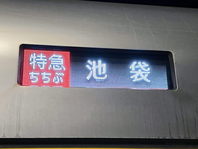 「特急ちちぶ」号のLED種別・行先表示(車両側面上部)