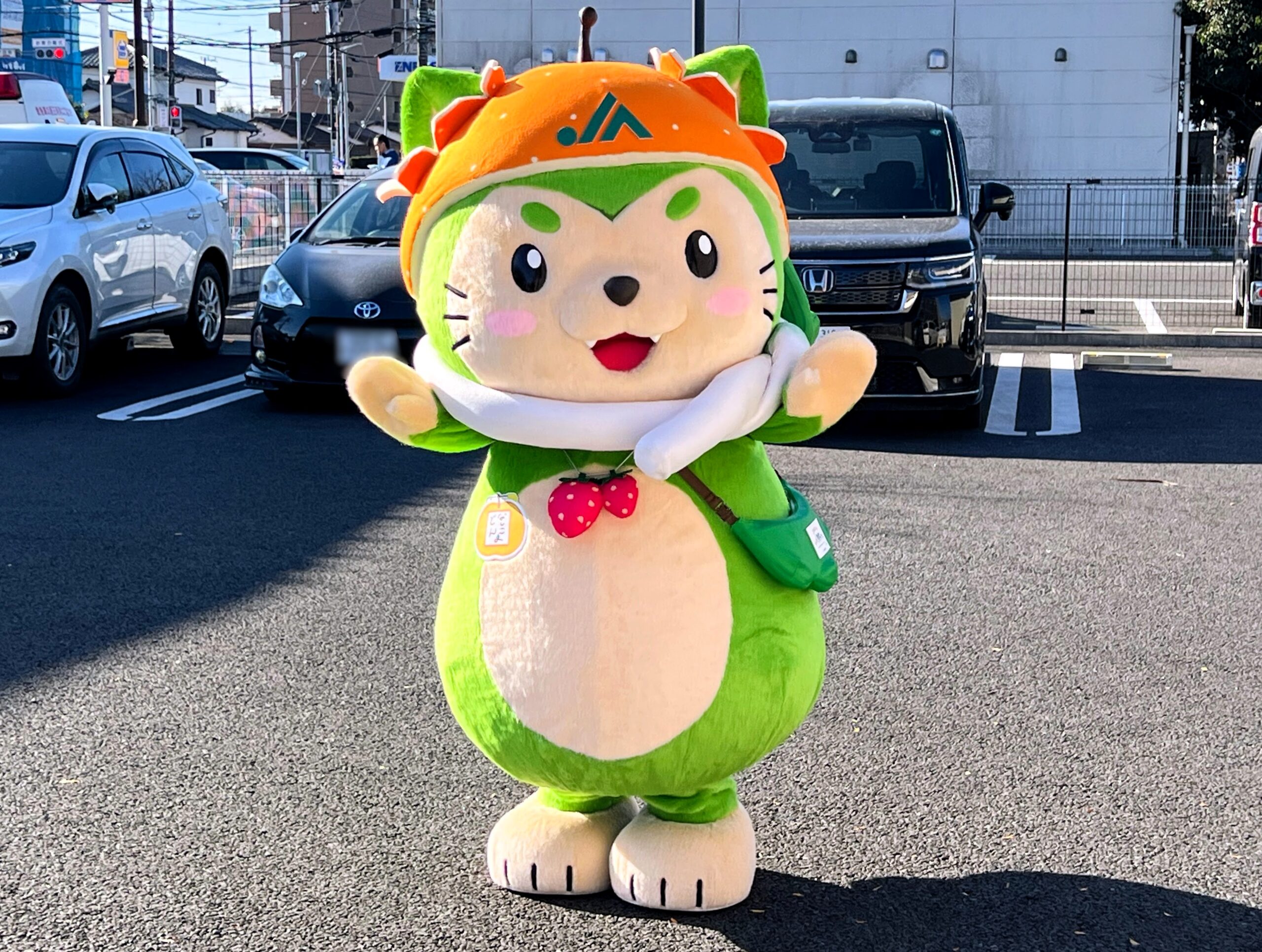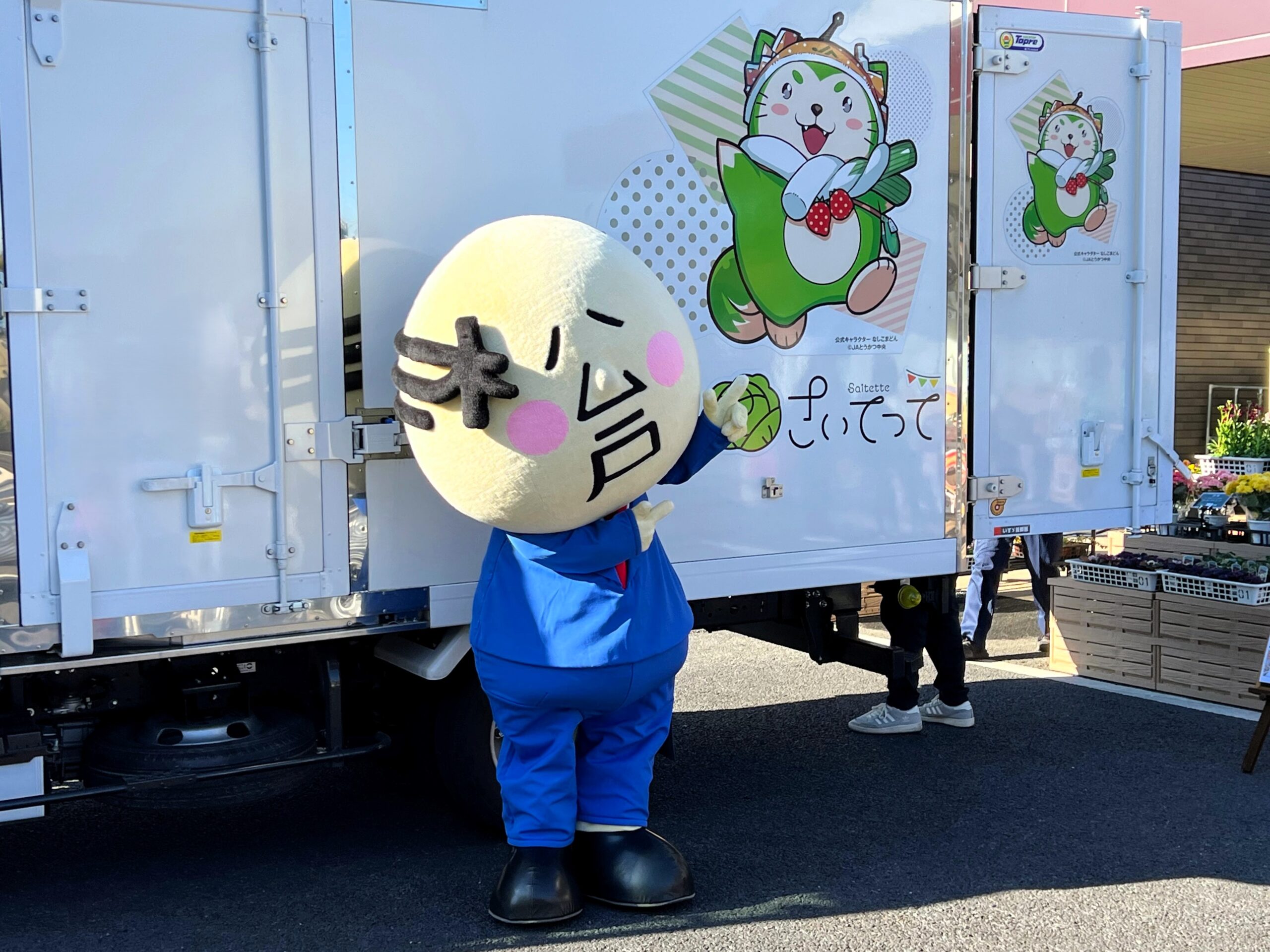 JAとうかつ中央(千葉県) 公式キャラクター「なしこまどん」に初めてお目にかかったときの写真です。この後、千葉県内のイベントで何度かお目にかかっておりますが、最初に出会ったときの思い出は、どんなときであっても特別なものですよね。