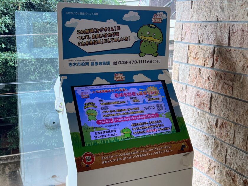 志木市内の健康促進事業の端末に描かれている「カパル」(2024年8月撮影)