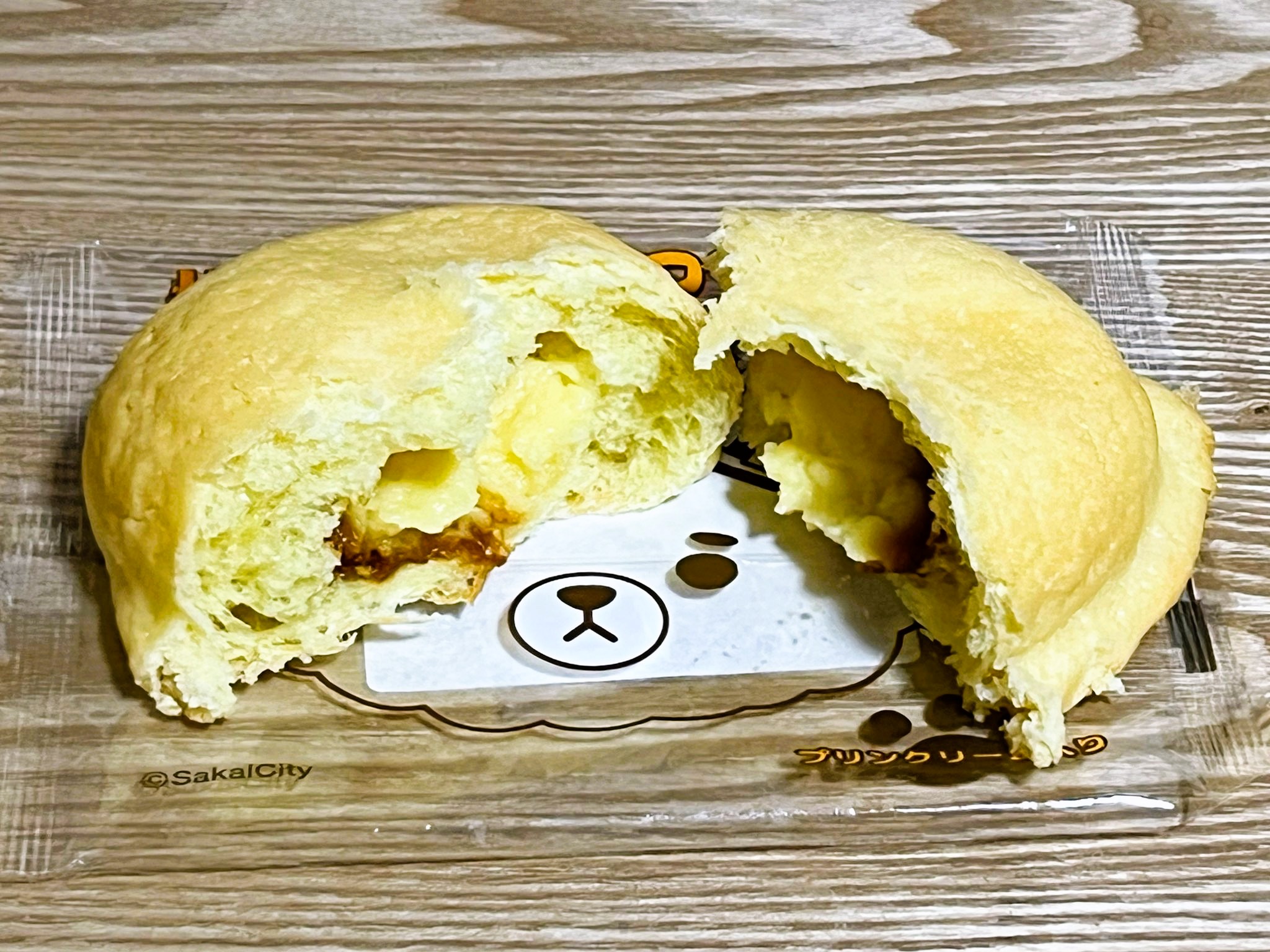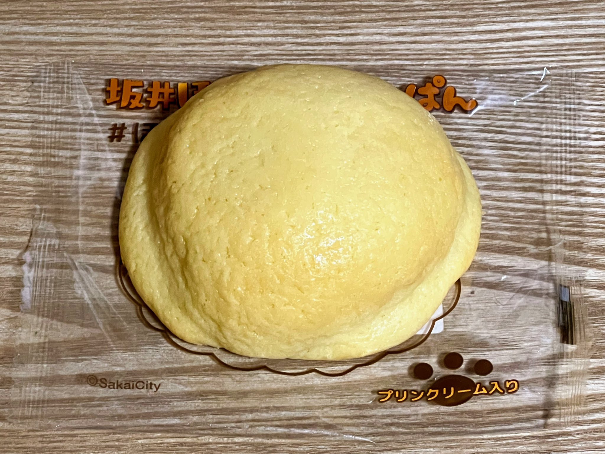 メロンパンそのものは、柔らかくてしっとりした生地が特徴的なものになっております。大きさはそれほどでもなく、崩れにくく食べやすいパンに仕上がっております。フィリングされたプリンクリームも甘さは抑えられており、老若男女問わず、難なく召し上がっていただけます。坂井ほや丸君ご本人のおっとりした表情が想起される、優しい味わいのメロンパンですね。