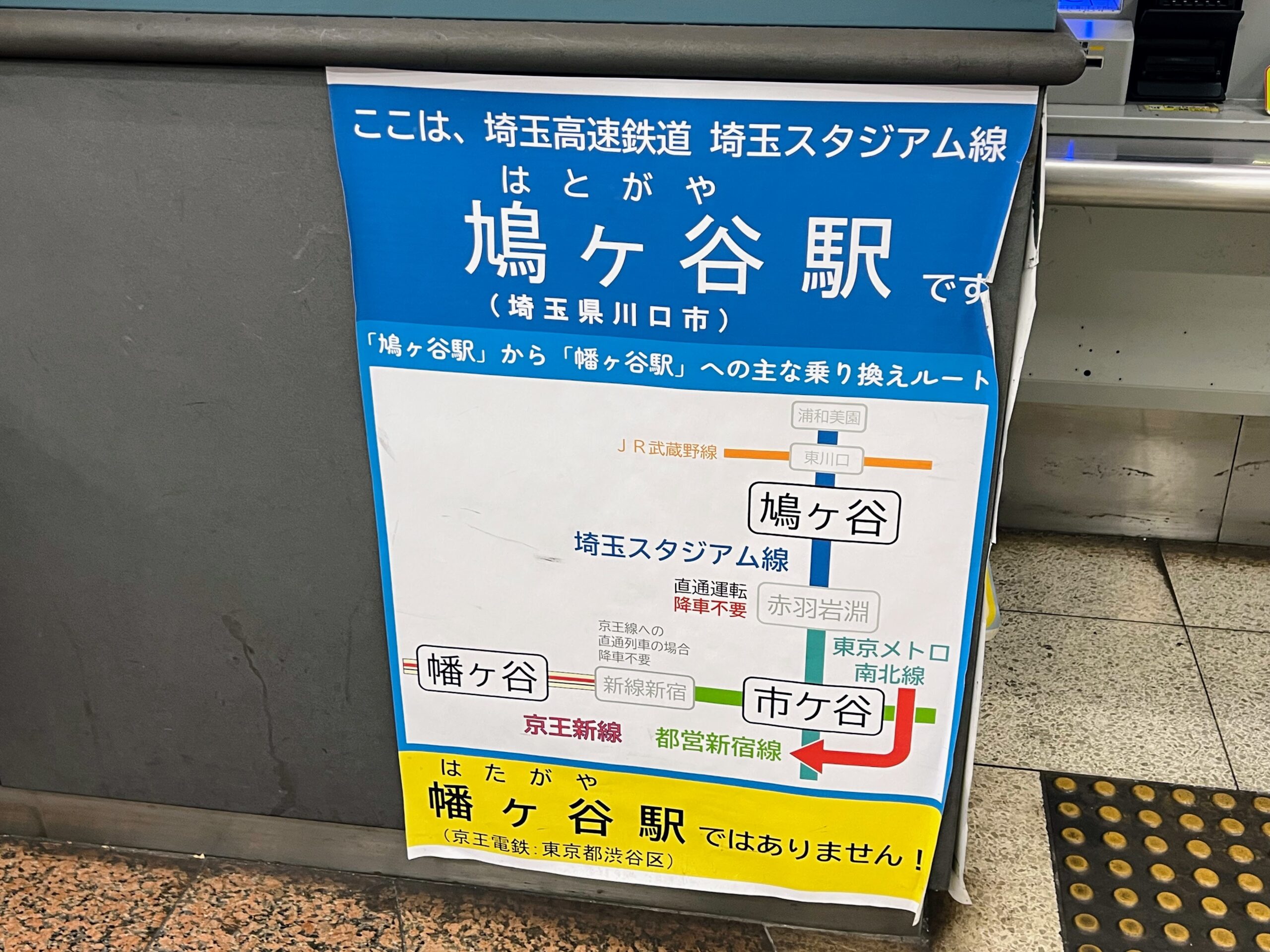 当該ポスターのすぐそばには、ご丁寧に鳩ヶ谷駅から幡ヶ谷駅までの経路を載せたポスターも掲示されていますので、こちらも要チェックですね!?
