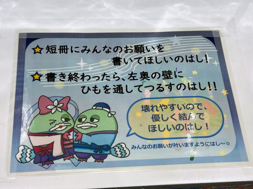 近くの案内メッセージには、JR板橋駅の「駅キャラ」である「いたのはしくん」の七夕用イラストも描かれておりました(ついでに言うと、短冊展示ボードにも描かれておりますね)。