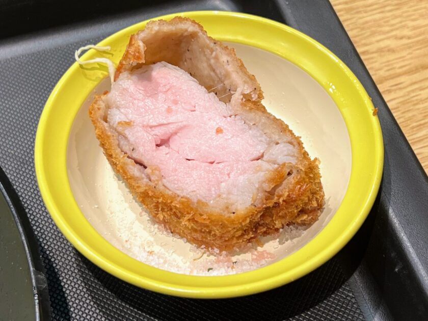 松のやでも屈指の美味なるトンカツ。とても柔らかい一品で、とてつもなく味わいやすく仕上がっていると思います。今年の「松のや」の新作メニューの中でも指折りの素晴らしいものでございます。なお、お肉が赤みがかっておりますが、リリース資料やポスターなどで問題ないことを謳っておりますので、ひとまず喫食に支障ないものと考えられます。