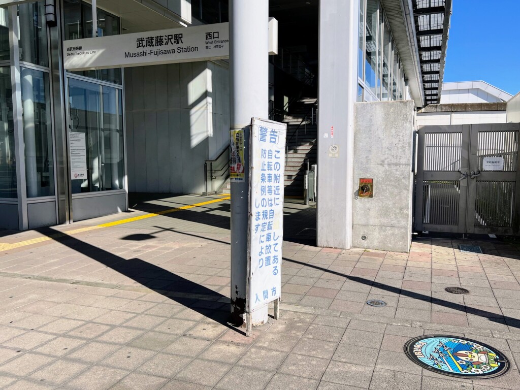 今回撮影したマンホールは、西武池袋線・武蔵藤沢駅の西口を出てすぐのところにございました。本当に改札を出てすぐのところにあるため、発見は容易でしょう。