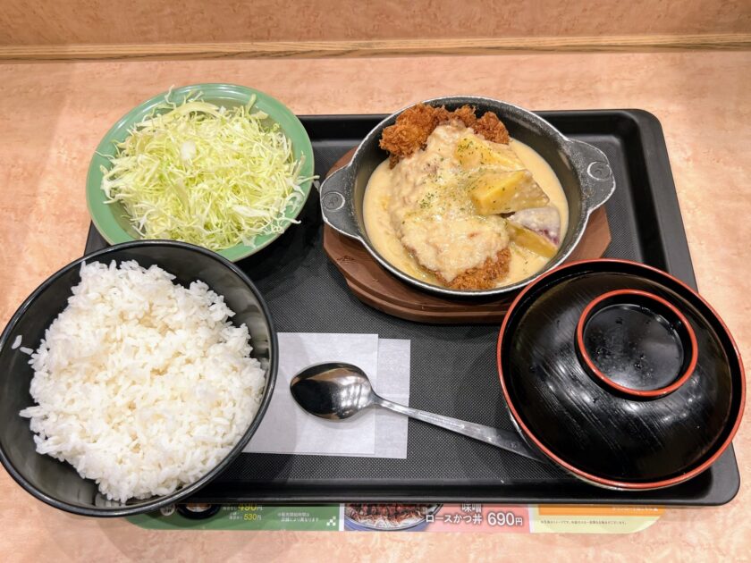 なお、「チキンかつ」以外にも「ムネかつ」を使用したものが提供されており、そちらはそちらで美味しそうです。お値段も両方ともに990円(税込)と、松屋の「シュクメルリ鍋定食」(2025年1月時点で1,100円)に比べてやや安いのも良いですね。