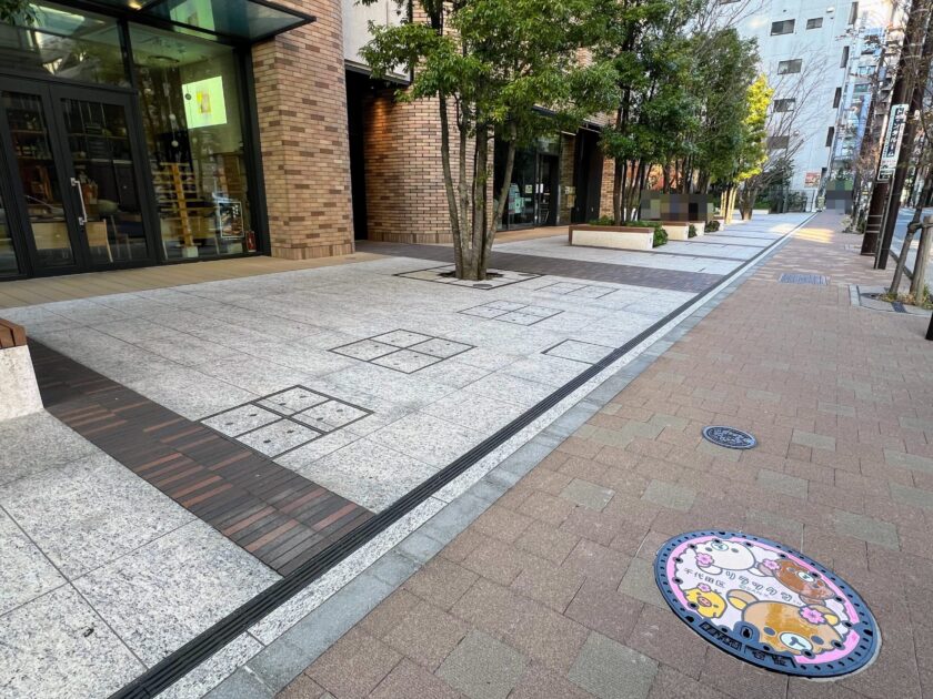 神田スクエアの「リラックマ」マンホール・設置場所周辺の様子(2025年12月撮影)