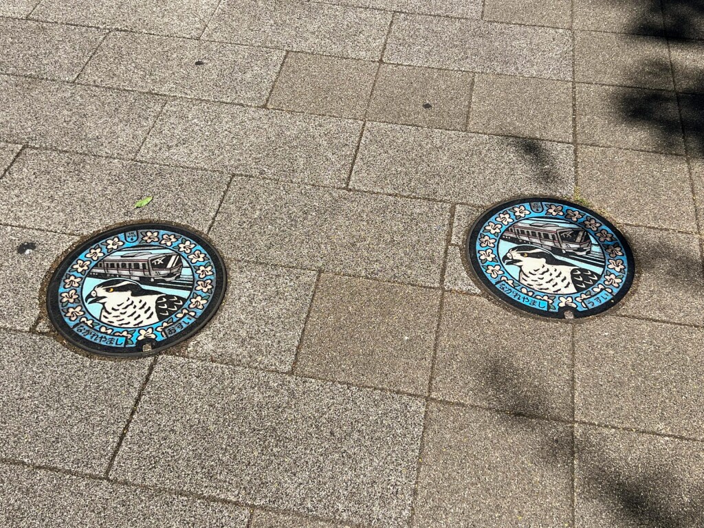 【ご当地マンホール】「オオタカ」「つくばエクスプレス」「ツツジ」のデザインマンホール(2025年8月撮影)【千葉県流山市/流山おおたかの森駅】