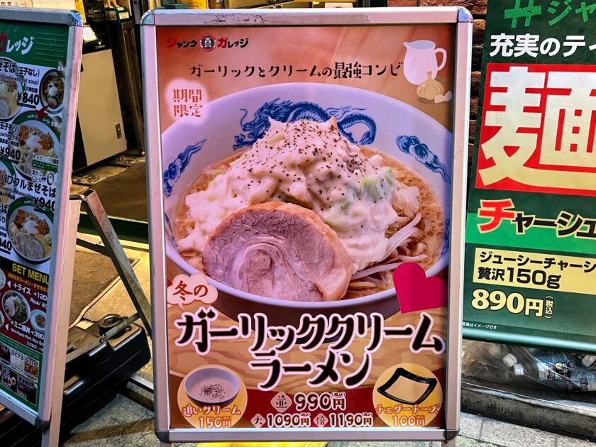 【ジャンクガレッジ】 あったかクリーム入り、「ガーリッククリームラーメン」(2025年12月撮影)【期間限定】