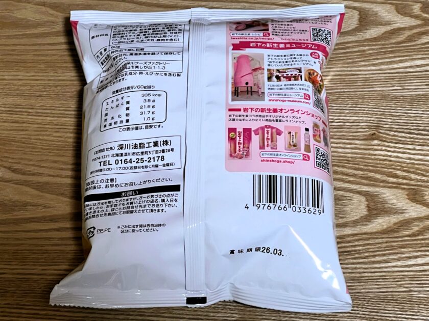 裏面には「岩下の新生姜」ブランドや「岩下の新生姜ミュージアム」の案内も掲載されています。岩下の新生姜の入門品としても良さそうですね。あるいは、北関東を離れて、「岩下の新生姜」ブランドに馴染みのない方(たとえば関東に引っ越す前の私のような人)向けにお土産にするにも良いと思います。