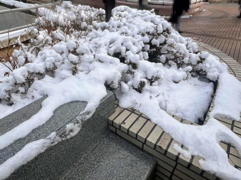 植物周辺に積もっている雪の様子