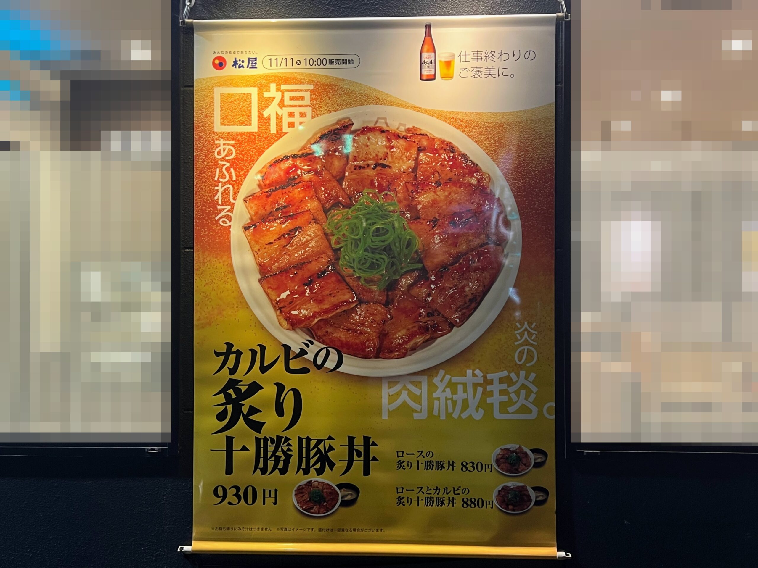 松屋の「カルビの炙り十勝豚丼」遠目から(2025年11月版)