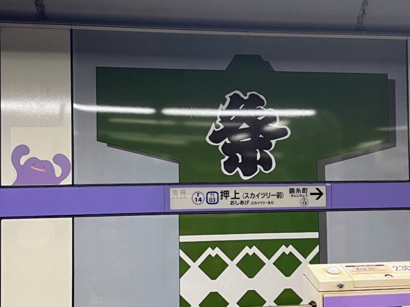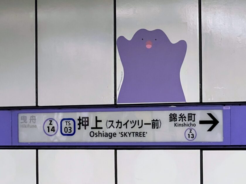 「押上駅」駅名標とメタモン(その1)
