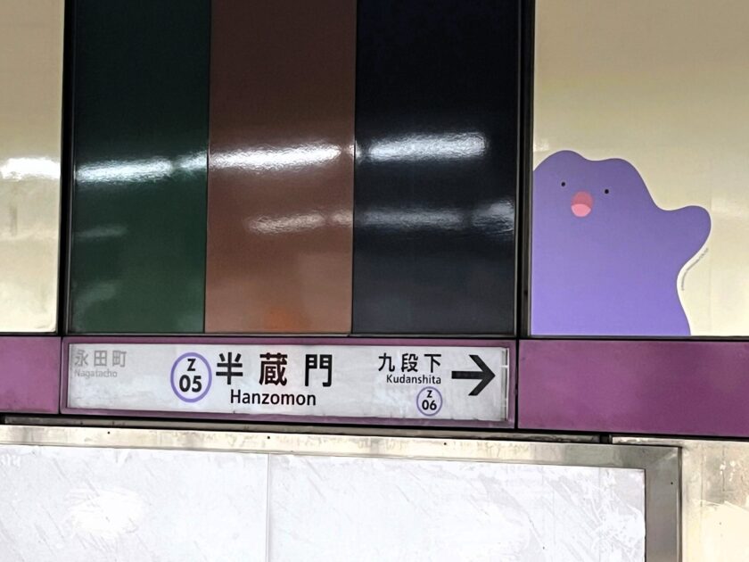 「半蔵門駅」駅名標とメタモン