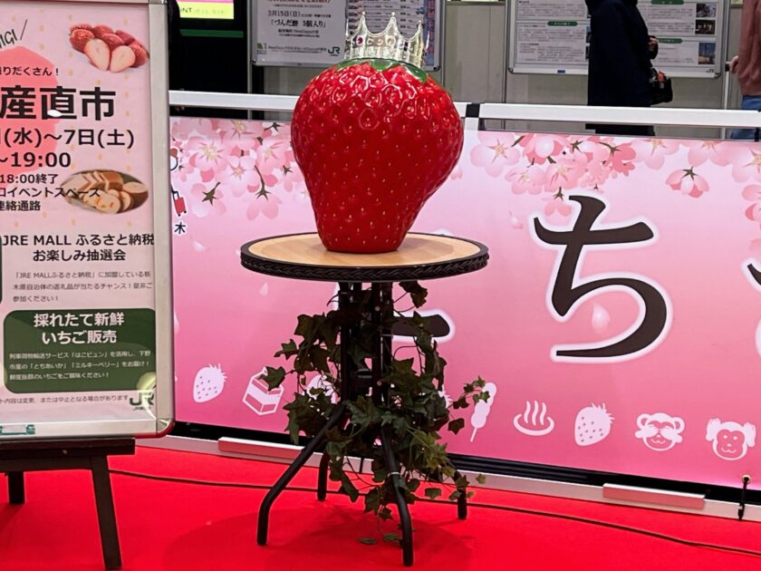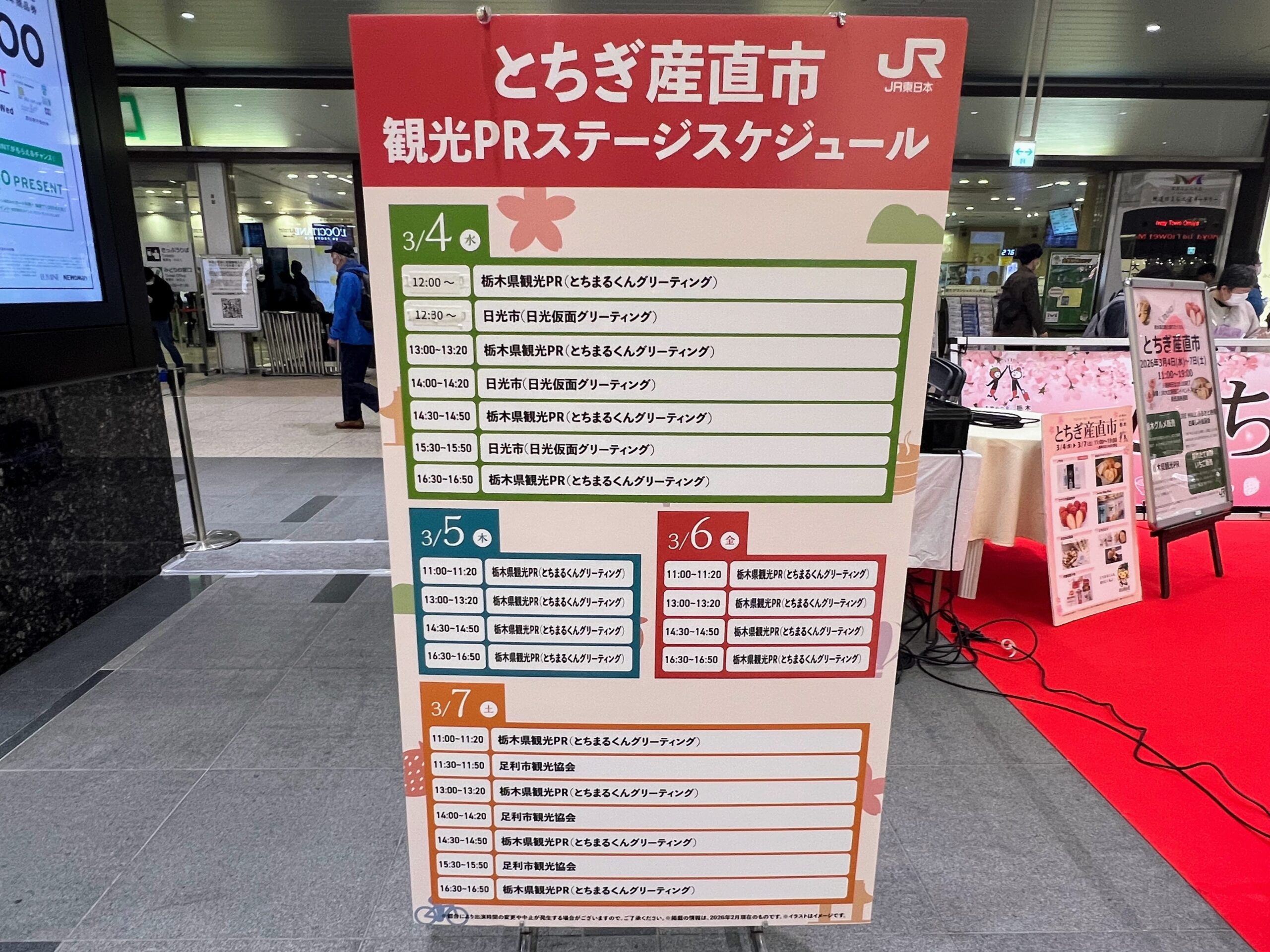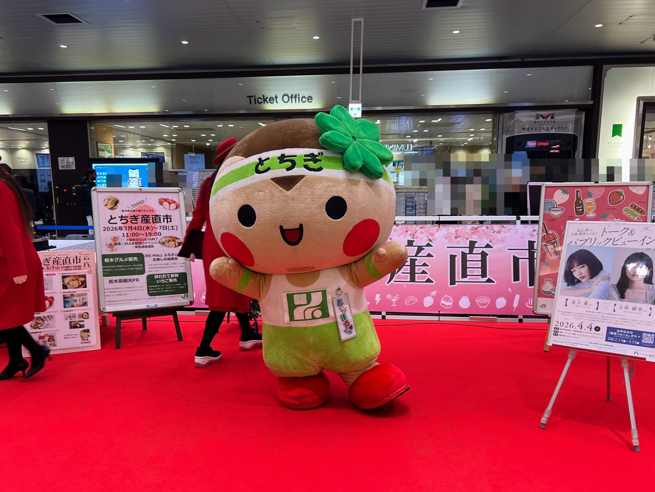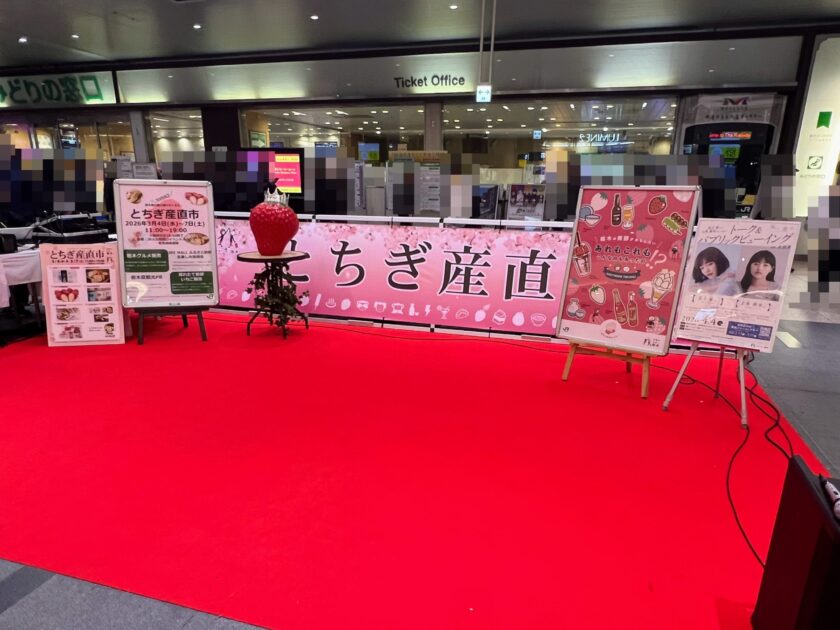 2026年3月4日(水)から7日(土)までの4日間、JR大宮駅の東西連絡通路にて実施されておりました「とちぎ産直市」において、栃木県マスコットキャラクター「とちまるくん」が登場しておりました。