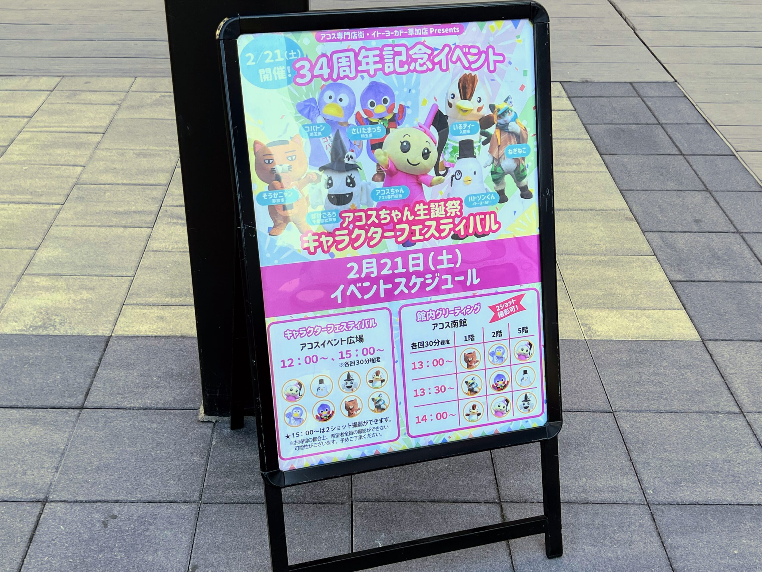 | イベント情報 | 【草加市】昨年よりもパワーアップして開催!「34周年記念イベント アコスちゃん生誕祭キャラクターフェスティバル」の詳細をお知らせいたします。 | 号外NET 草加市 |