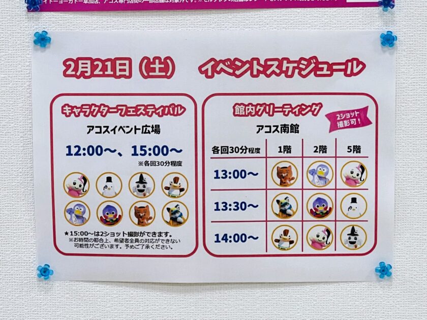 2026年2月21日(土)、埼玉県草加市のアコス南館「アコス専門店街」で「アコスちゃん生誕祭キャラクターフェスティバル」が実施されておりました。