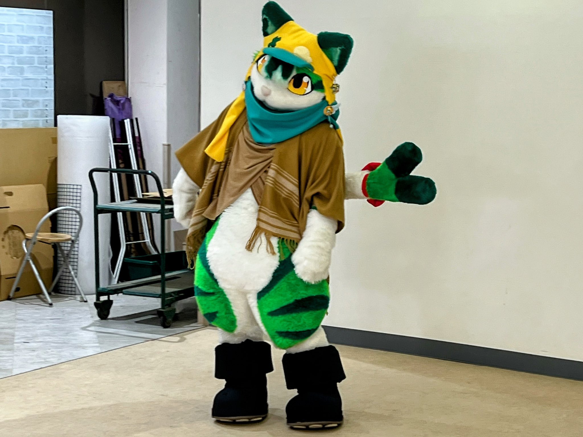 その「ばけごろう」君に触発されたのかどうかは分かりかねますが、「アコスちゃん」ご自身もイベント後半で「ばけごろう」に似せたコスチュームを披露。ところどころ手作り感はありましたが、それでも素敵なものだったと思います。県外からの来訪者を歓迎するという意味合いでも、これ以上ないくらいの素晴らしいおもてなしでしたね。