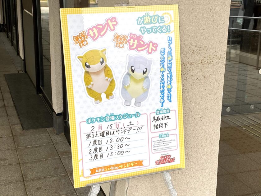 その模様をそばでちらちらと聞いていたのですが、「サンドの日」のことや「とっとりふるさと大使」のことを知っている人はごく僅かで、「たまたまグリーディング現場に出くわした」だけの方が大勢であったように思います。私のように「予定を合わせてサンドやアローラサンドに会いに行っている」という方はほとんどいなかったのですね。それだけ、まだまだ認知度が薄いということなのでしょうか。