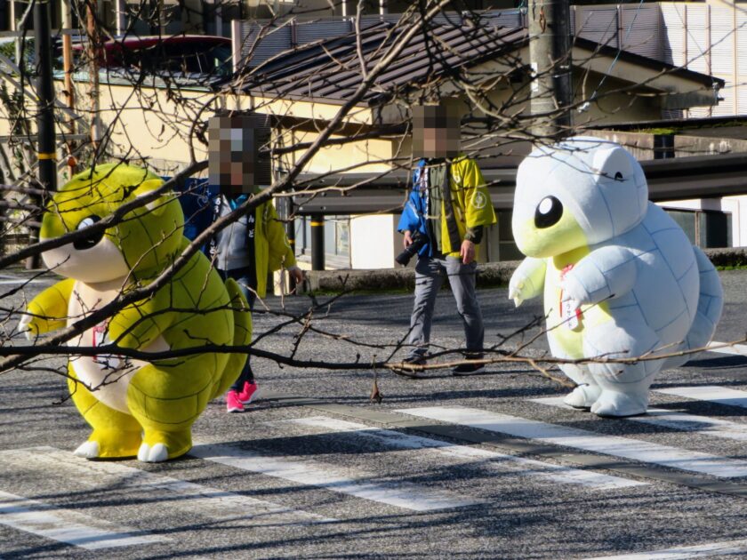 このイベントの一環として、2019年11月30日(土)、三朝温泉の足湯施設「かじかの湯」で、とっとりふるさと大使の「サンド」と「アローラサンド」によるグリーディングが行われました。
