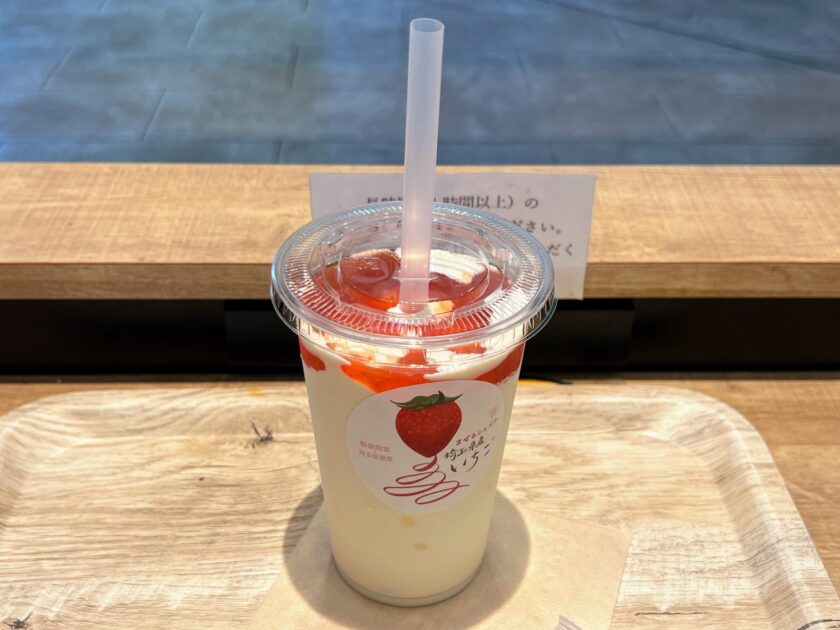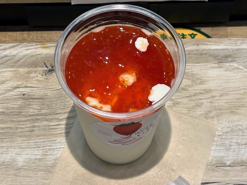 なお、味については、甘酸っぱい苺ソースとほんのり甘いバニラシェイクがうまく合わさった、とても飲みやすい一杯になっています。まさに夏場にはピッタリのメニューでございますね。