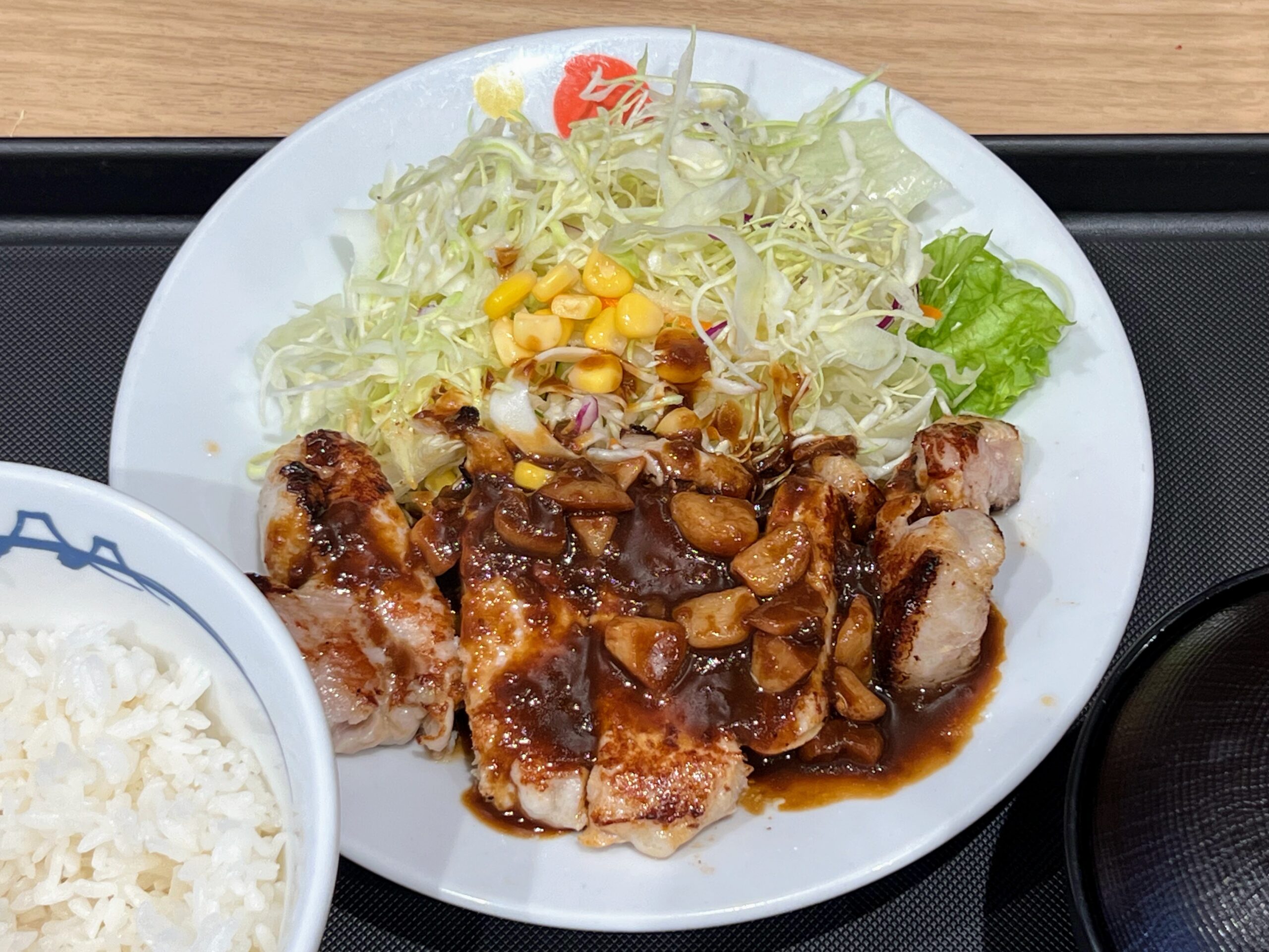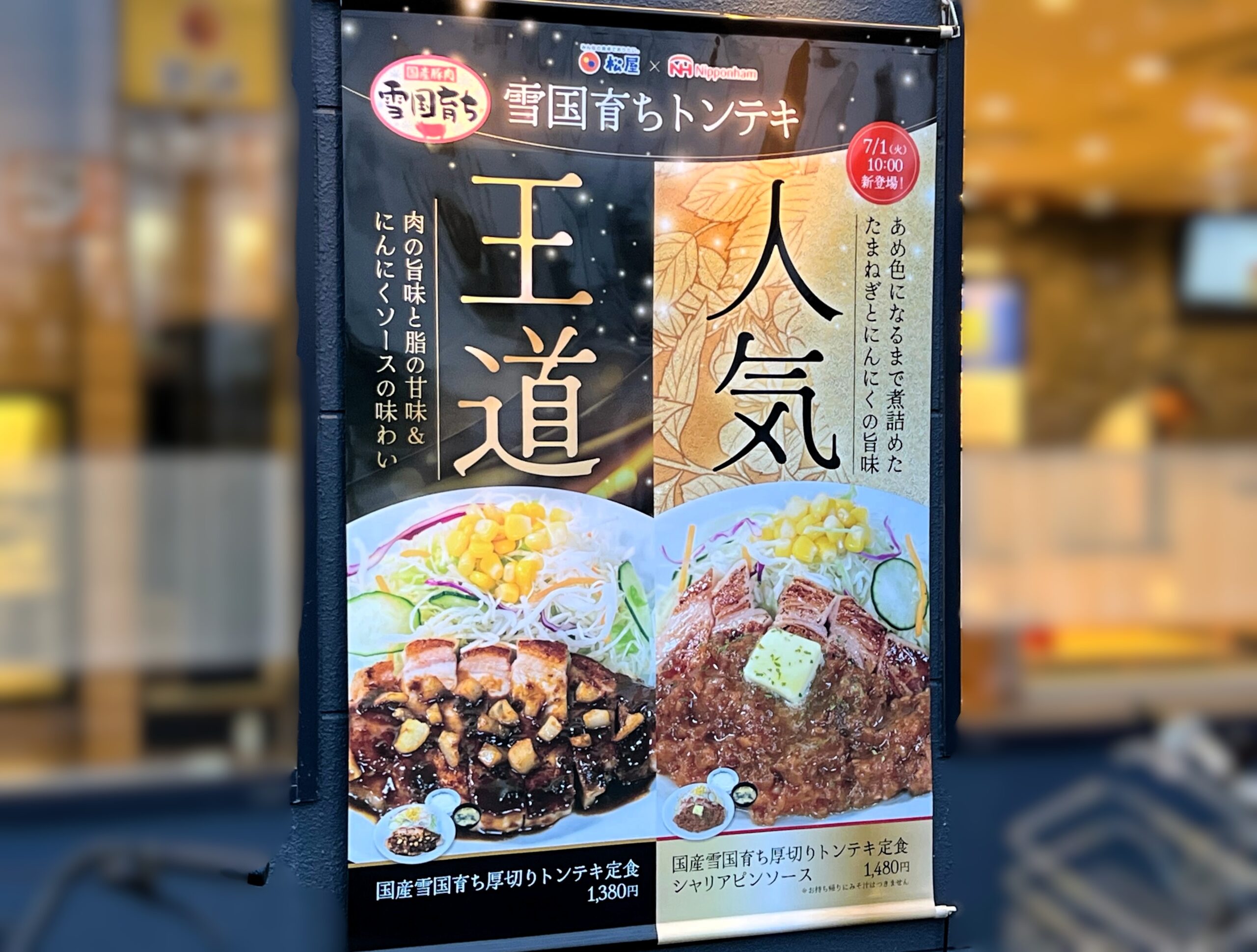 2025年4月29日(火)より松屋の一部店舗で限定販売されていたメニューになります(その後、「国産雪国育ち厚切りトンテキ定食」の名称で2025年6月24日(火)より全国に展開されています)。