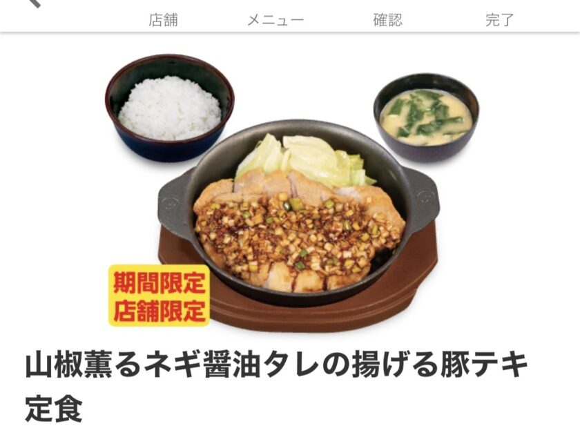 | 撮影対象 | 山椒香るネギ醤油タレの揚げる豚テキ定食 |